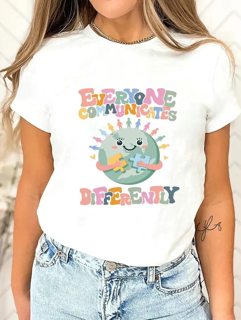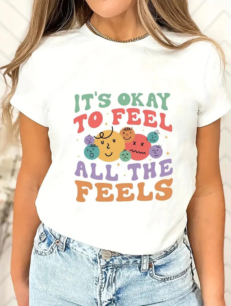 Простая и элегантная женская белая футболка с принтом
