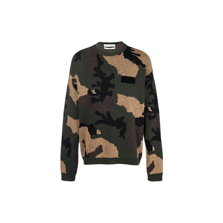 Off-White SS19 свободный камуфляжный свитер с круглым вырезом, мужские топы, зеленый камуфляж OMHA056E18A350019900
