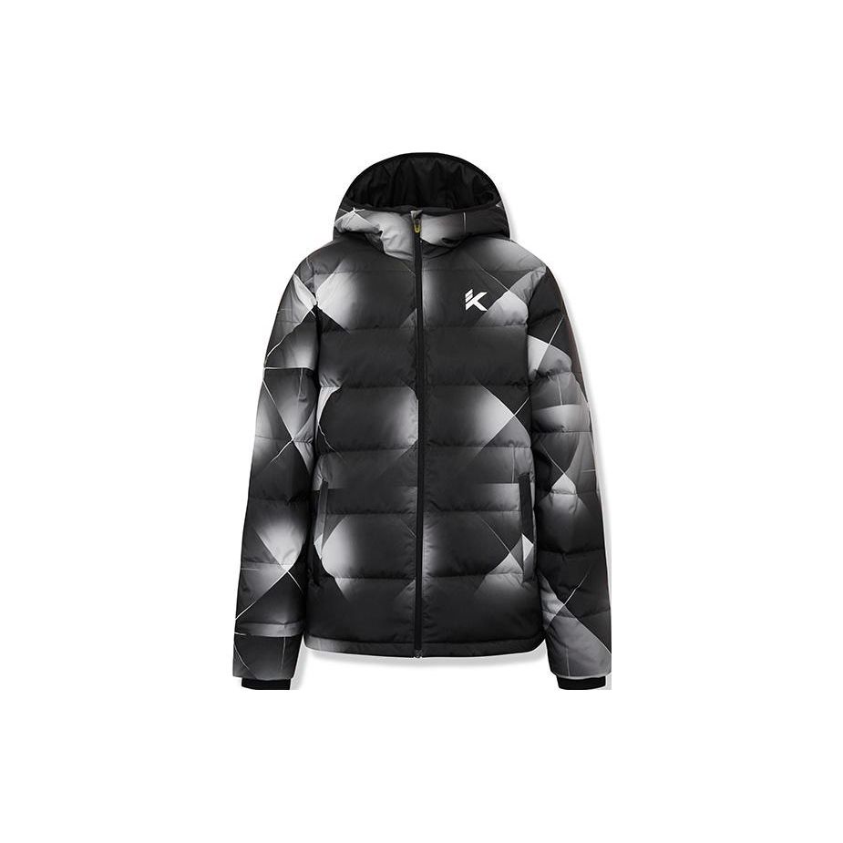 Anta Утолщенный пуховик с капюшоном на флисовой подкладке и принтом по всей поверхности, мужская верхняя одежда, черный 152241908-4