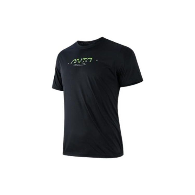 Anta Беговая серия с круглым вырезом и буквенным логотипом, дышащая футболка с короткими рукавами и принтом, мужские топы, черные 152325108-5