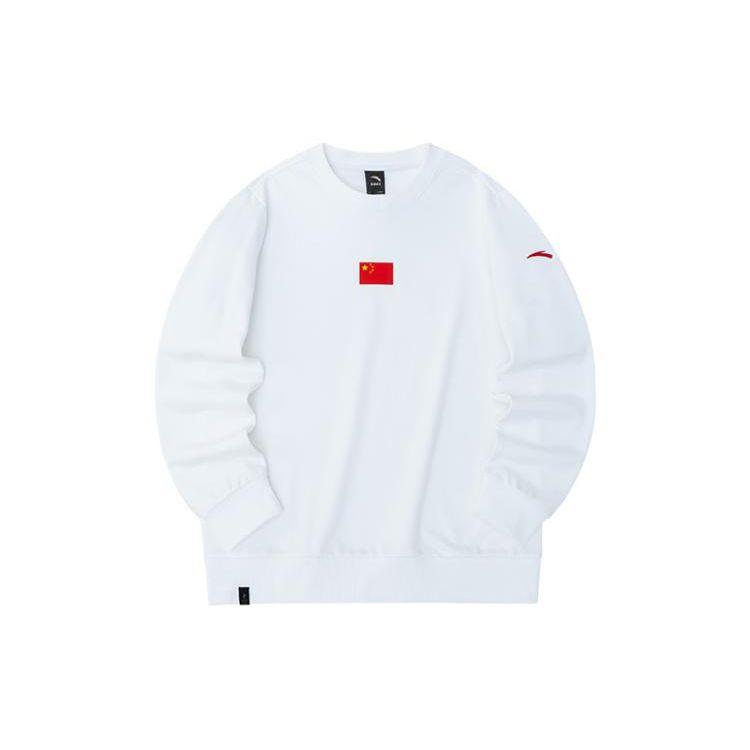 Anta Пуловер Pure Color с принтом национального флага и логотипом, пуловер с круглым вырезом, топы унисекс, чисто-белый 172250701-1