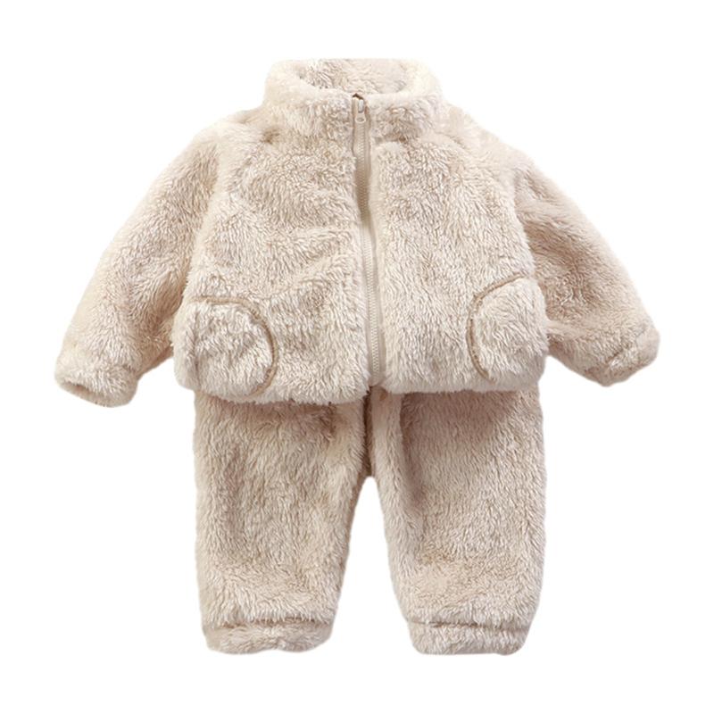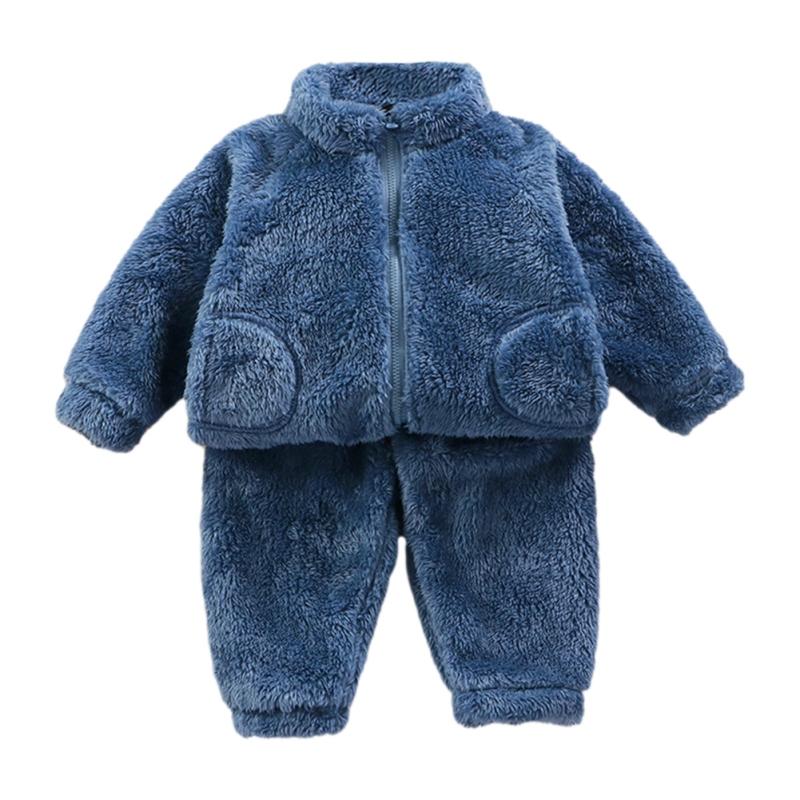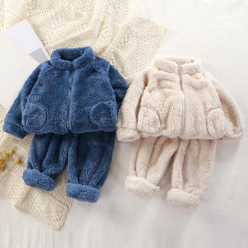 Детский однотонный плюшевый комплект из топа и брюк на молнии