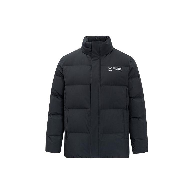 Anta Сплошной цвет с принтом букв на молнии и воротником-стойкой, пуховик, мужская верхняя одежда, черный 952247944-4