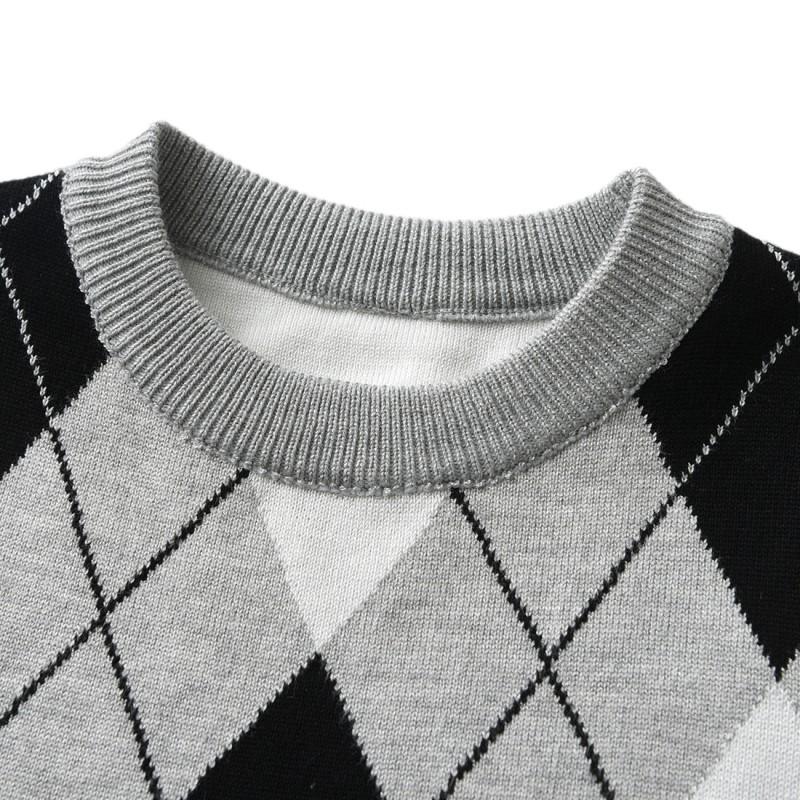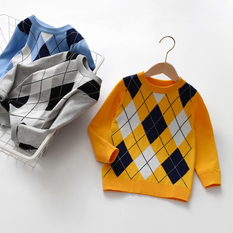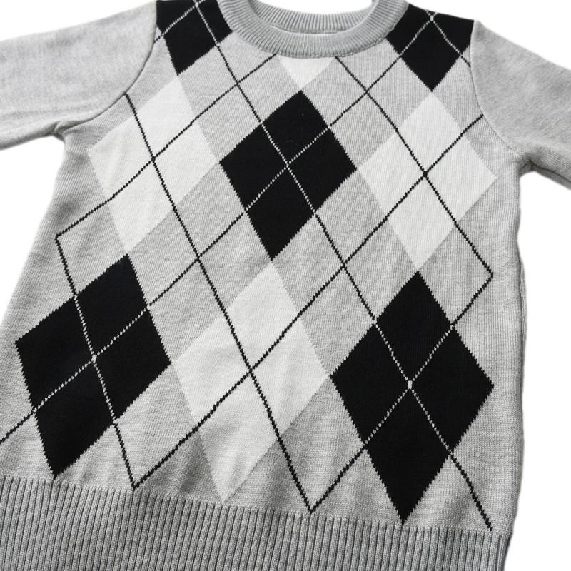 Детский свитер с клетчатым узором, круглый вырез, пуловер с длинными рукавами, вязаный топ
