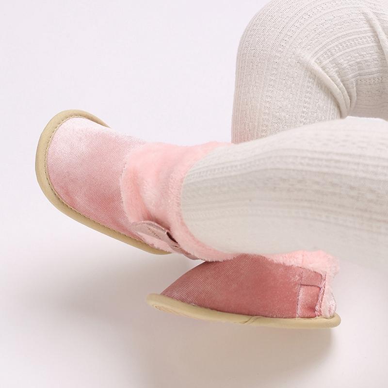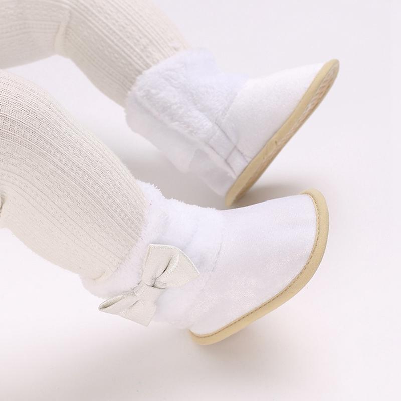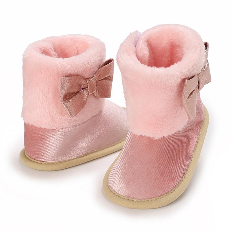 Детские сапоги для девочек, обувь на липучке по бокам с бантом, зимняя нескользящая флисовая детская обувь