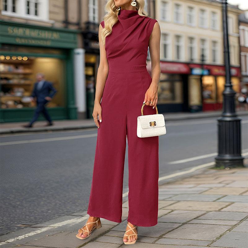 Летний женский однотонный комбинезон без рукавов с отложным воротником