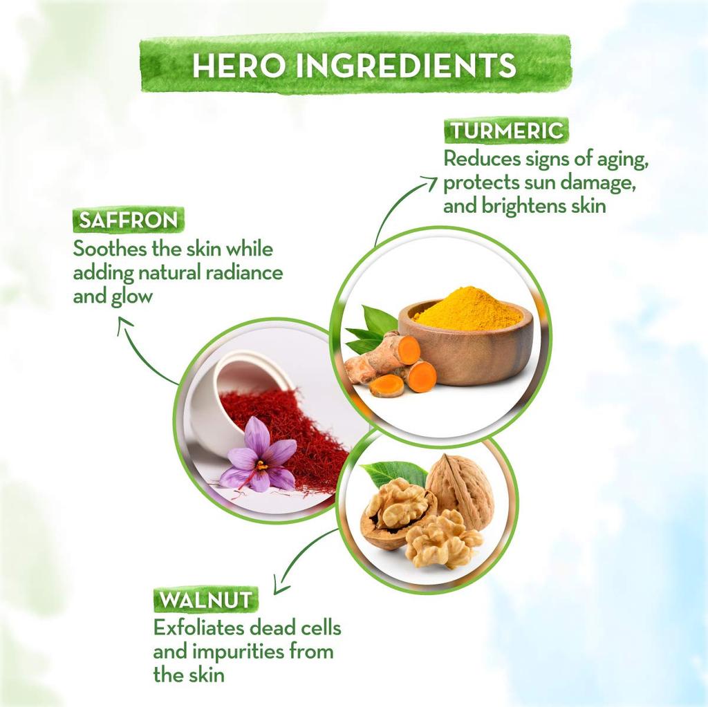 aqua, cocamidopropyl betaine, caprylyl/capryl glucoside, sodium methyl cocoyl taurate, decyl glucoside, acrylates copolymer, sodium lauroyl sarcosinate, glycerin, sodium lauroyl oat amino acids, walnut shell powder, phenoxyethanol, ethylhexylglycerin, ifra certified allergen free fragrance, ethylene glycol monostearate, cetyl alcohol, polyquaternium 39, titanium dioxide, sodium benzoate, turmeric extract, saffron extract, benzophenone-4, zinc oxide, disodium edta, sodium hydroxide & ci 19140 (food grade color)