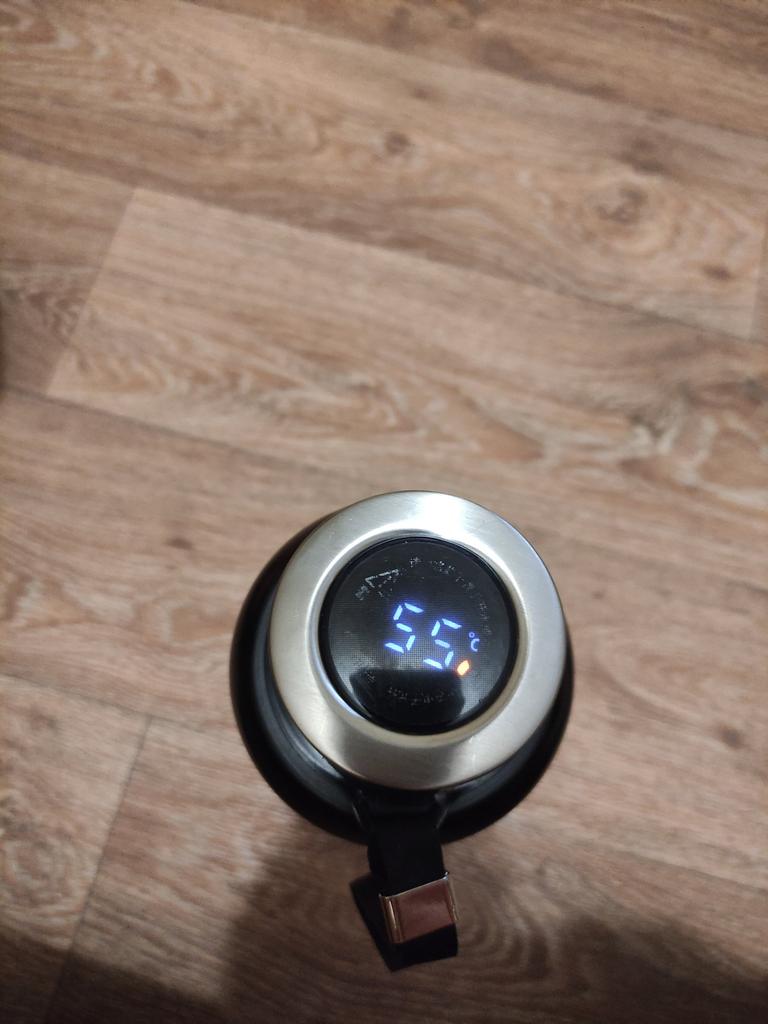 Нормальный вроде бы термос. Держит температуру почти 36 часов. Индикатор очень слабо светится,на фото при хорошем освещении,весь потёртый, как будто уже пользовались крышкой.