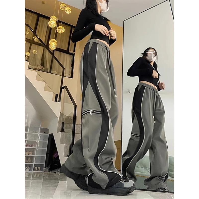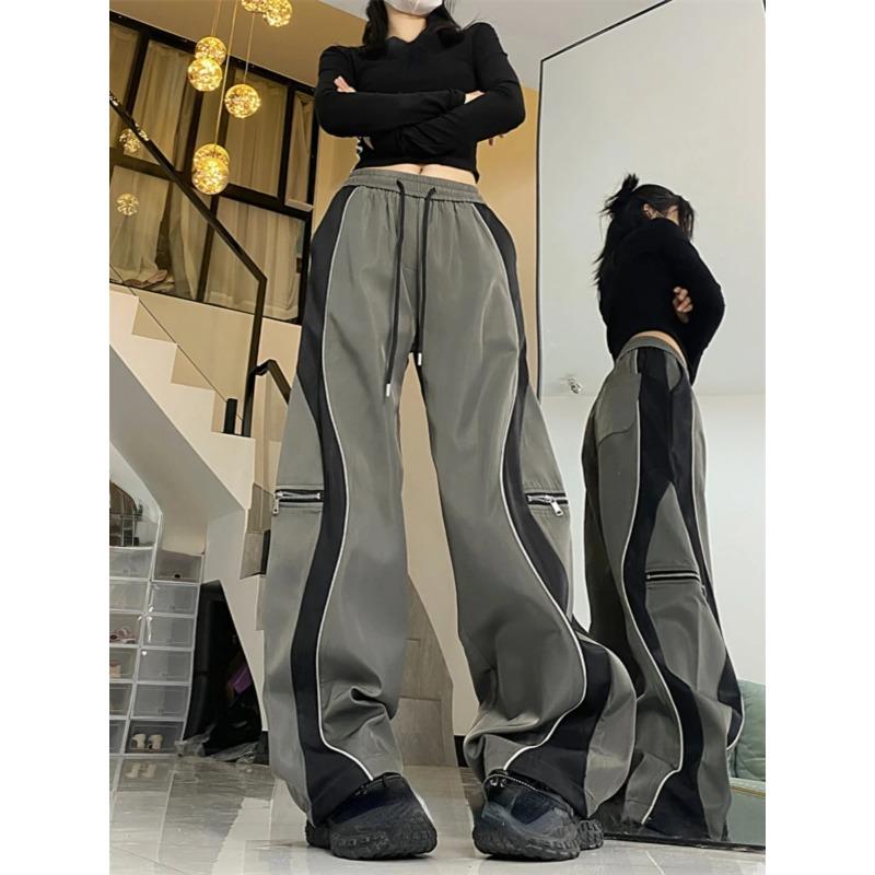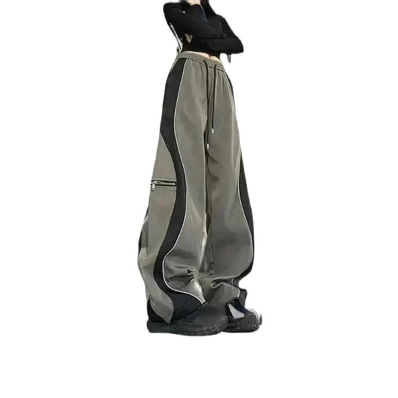 Y2K Line Design Брюки Женские Карманы на шнурке Широкие шикарные брюки в стиле панк Мешковатые полосатые спортивные спортивные штаны Парашютные брюки для бега