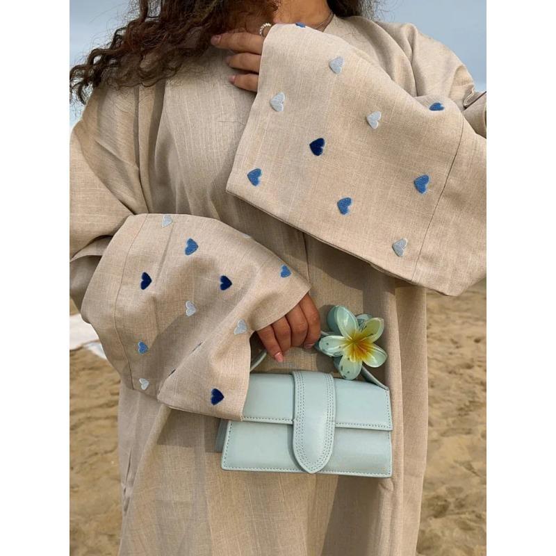 2024 весенняя мусульманская абайя с вышивкой, женское платье для Ид, Марокко, Рамадан, на шнуровке, абайи, кафтан, исламский кардиган, длинный арабский халат в Дубае