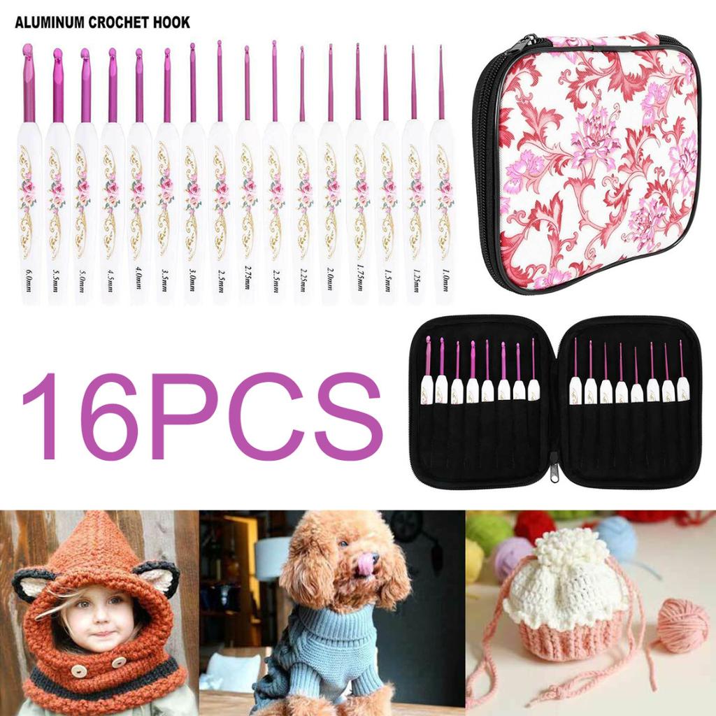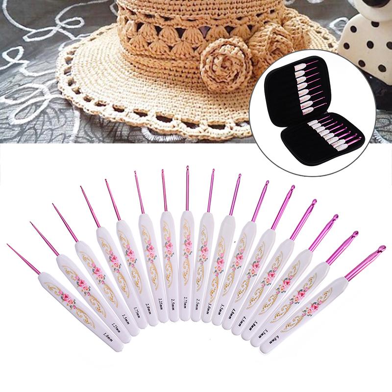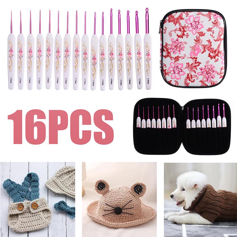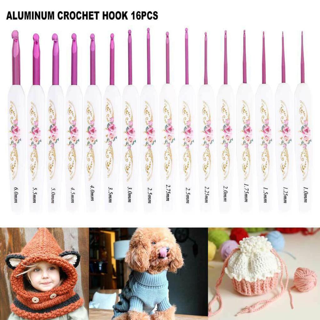 16 шт. новый набор крючков с мягкой ручкой, алюминиевые спицы 1,0 ~ 6,0 мм с ручкой