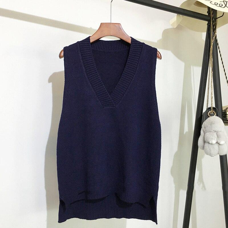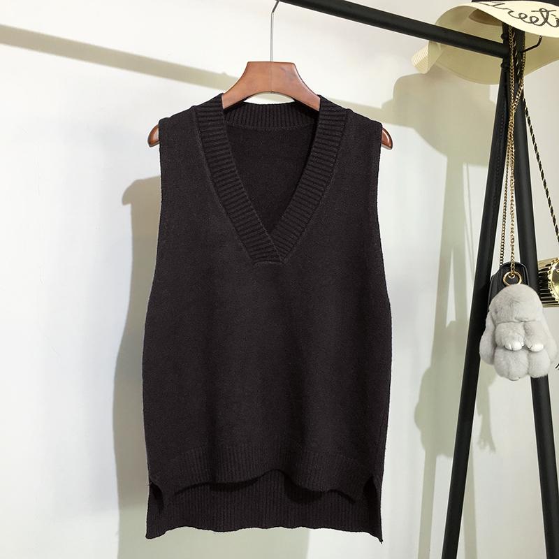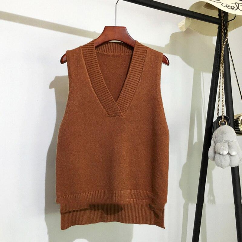 Шикарный вязаный жилет с v-образным вырезом, женский свитер, осенне-зимний новый свободный пуловер, жилет, повседневные теплые свитера без рукавов 11810