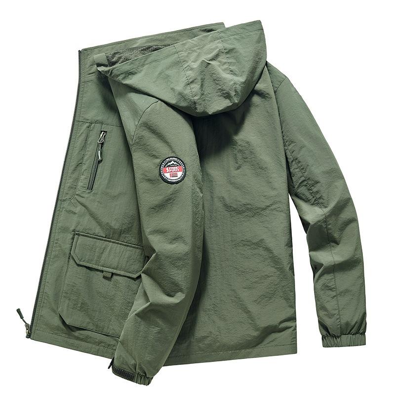 Весенне-осенняя ветровка, мужская верхняя одежда с капюшоном, пальто, мужская свободная повседневная тонкая куртка на молнии на молнии, модная одежда для альпинизма