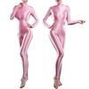 Женский цельный блестящий комбинезон с длинными рукавами и двойной молнией, гладкий комбинезон, комбинезон, комбинезон