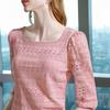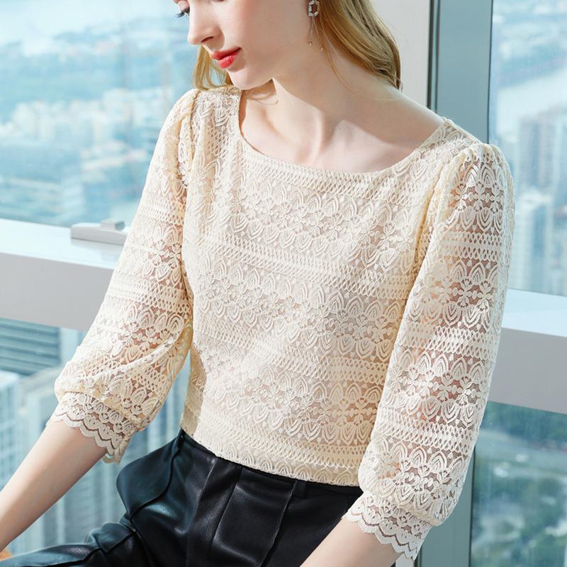Кружевная нижняя рубашка для женщин, прямой вырез, ажурная блузка, сексуальная футболка с рукавом три четверти