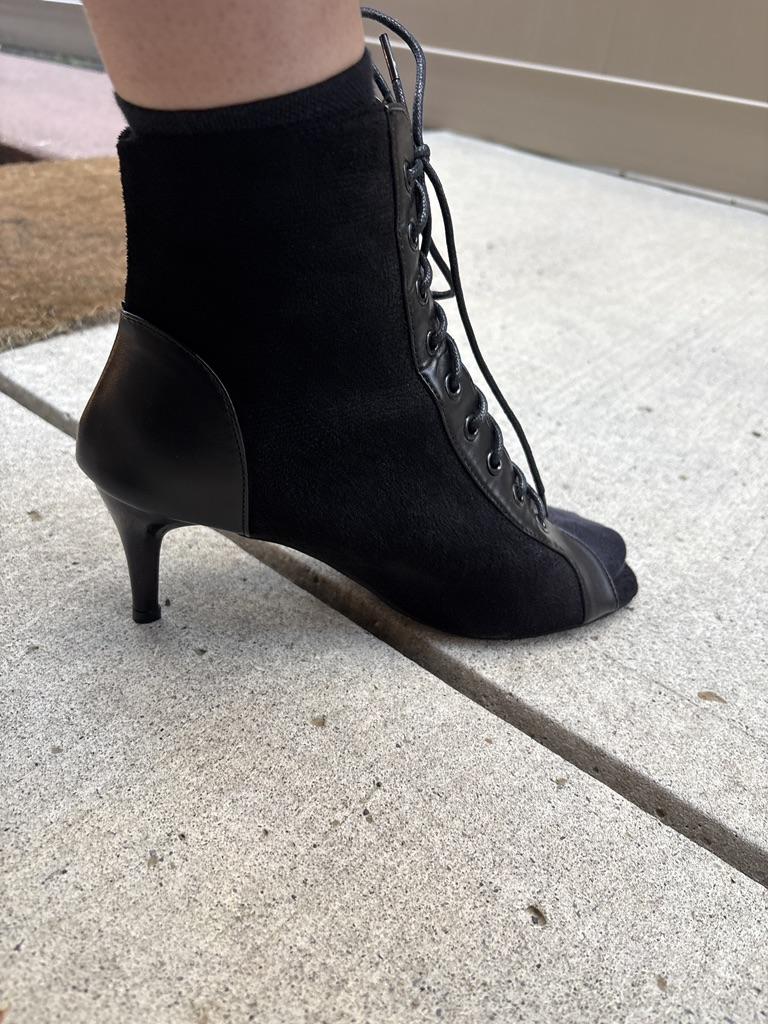 Стопа 26.5 размер 43 как раз. У кого подьём высокий как у меня змейка застёгивается с трудом. Качество супер, каблук высокий но устойчивый, колодка удобная. Всё нравится.