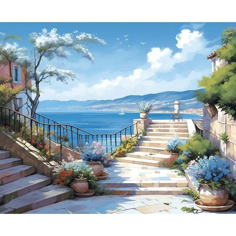 Рамка Ruopoty, краска по номерам для взрослых, морской пейзаж, холст, набор для рисования, рисунок «сделай сам», по номерам для домашнего декора, 40x50 см — купить товар онлайн с бесплатной доставкой по всему миру!