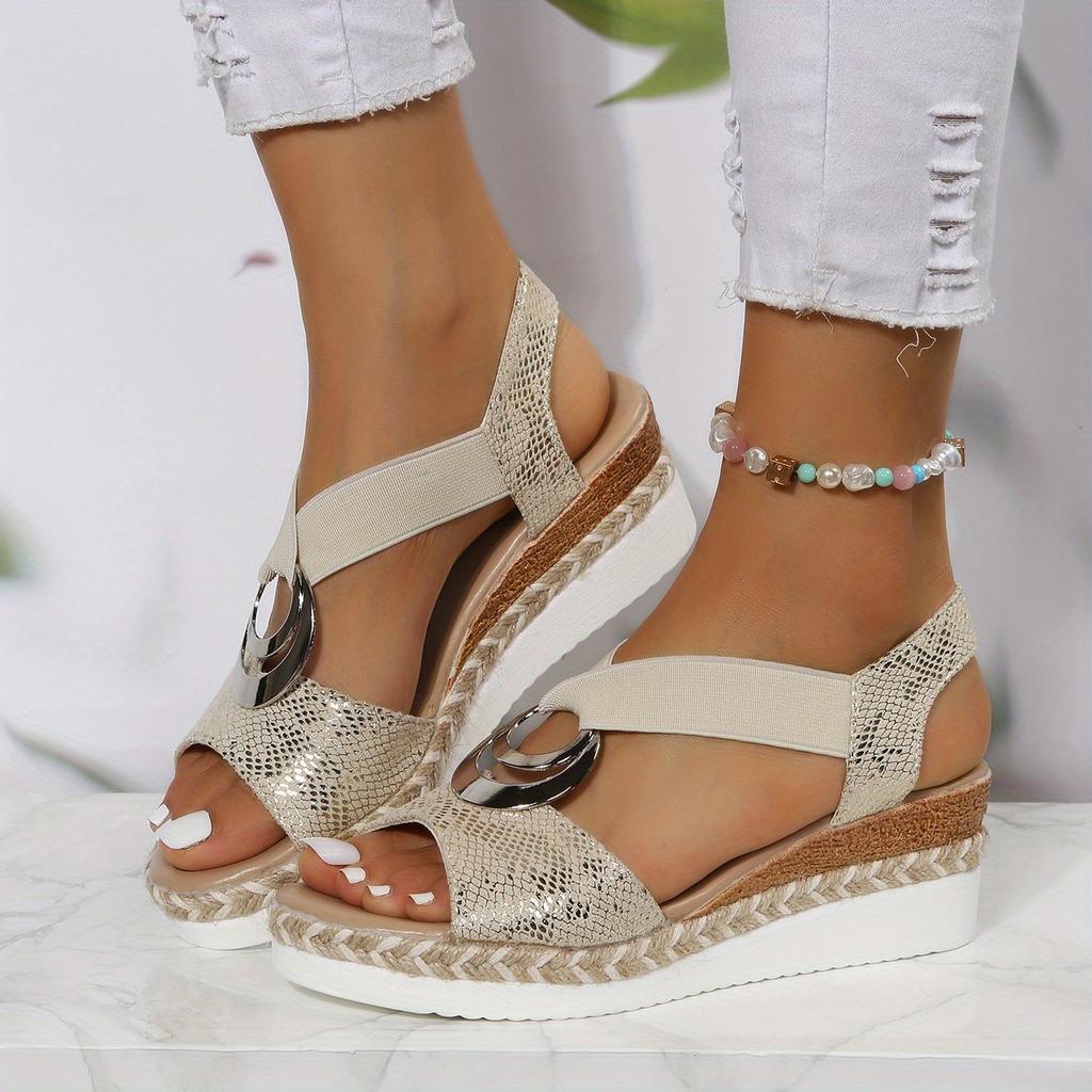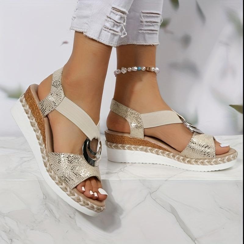 Женские повседневные сандалии на танкетке в стиле бохо, туфли без шнуровки с открытым носком, повседневные летние сандалии