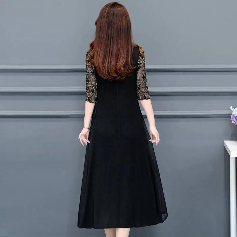 Платье больших размеров, женское летнее черное платье средней длины, однотонное свободное платье, платье большого размера для вечеринок и свиданий