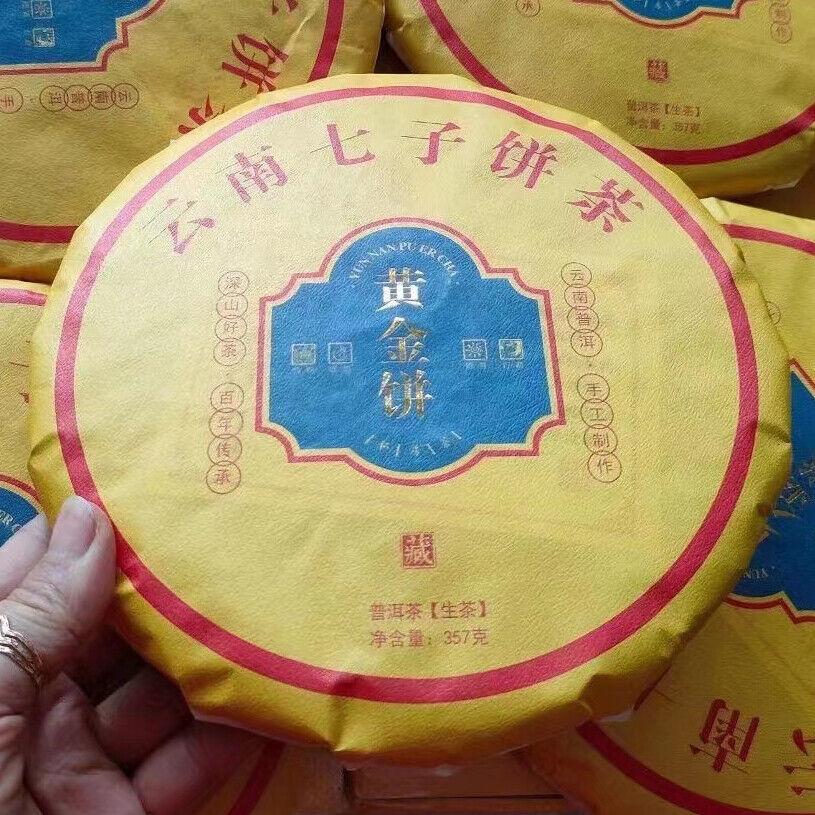 357г Юньнаньский сырой чайный пирог Пуэр 2014 Золотой лист Шэн Пуэр Чай Чайный торт Пуэр