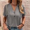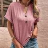 Модные женские свободные летние простые повседневные топы с V-образным вырезом и пуговицами с короткими рукавами