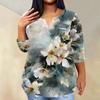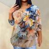 Женский модный повседневный пуловер с рукавами три четверти и V-образным вырезом с принтом, топ с рукавами 4/3