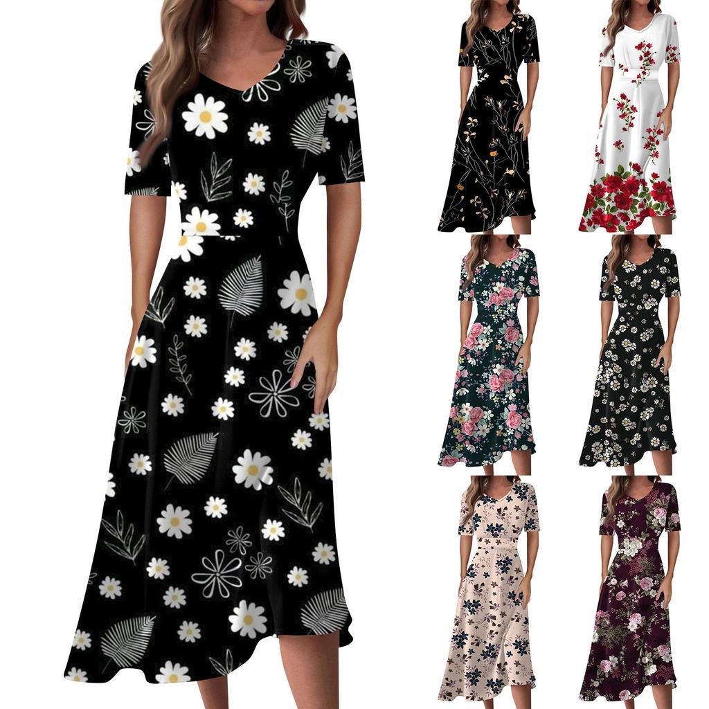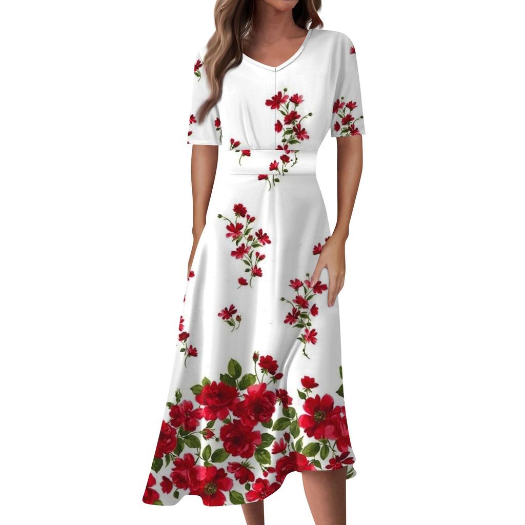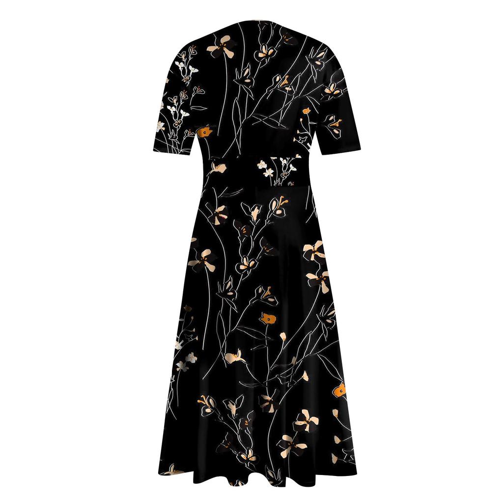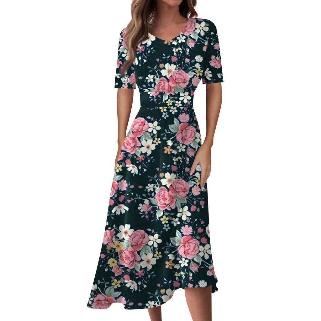 Женское повседневное модное длинное свободное платье с v-образным вырезом и коротким рукавом на талии