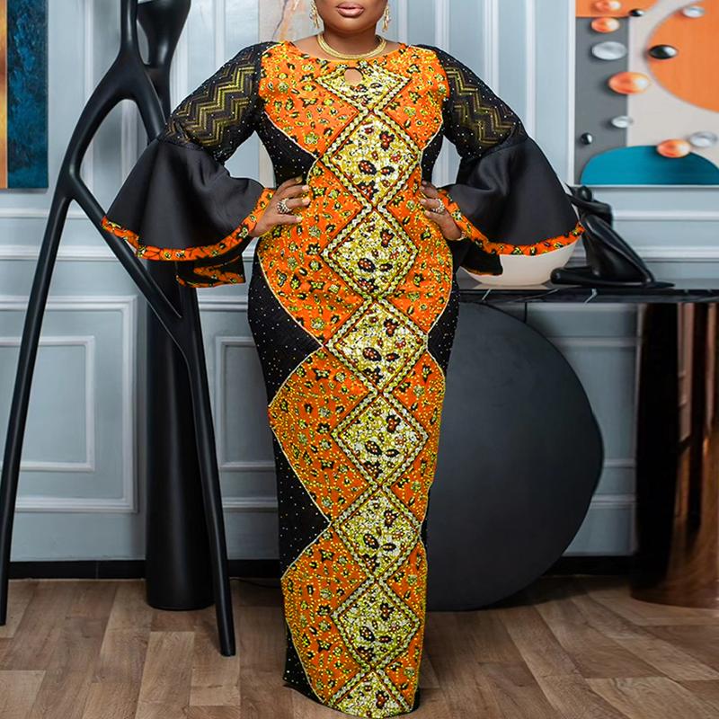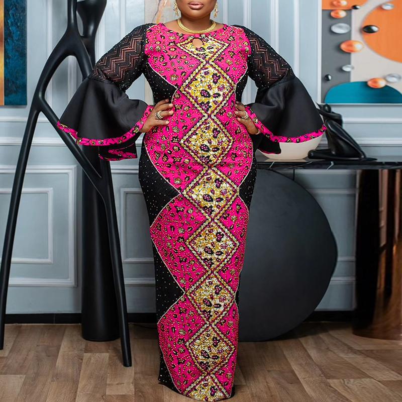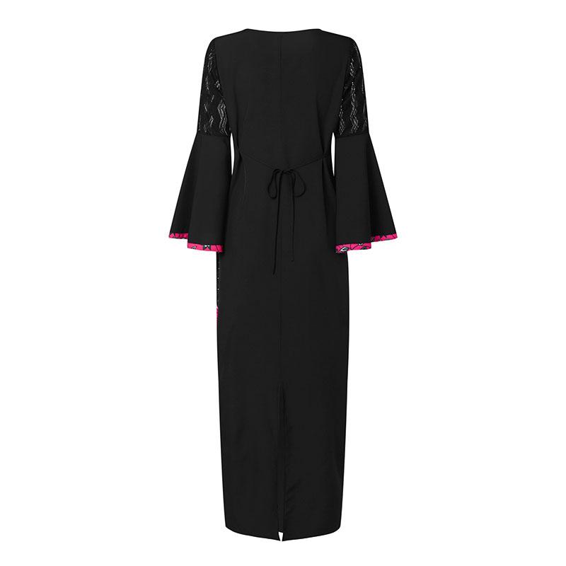 Характеристики:Круглый вырез, длинные рукава, расклешенные рукава, кружевное пэчворк, платье в пол.