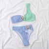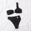 Сексуальное бикини на одно плечо, текстурированный купальник, женский купальник с высоким вырезом, женские купальные костюмы, однотонный комплект бикини с блокировкой