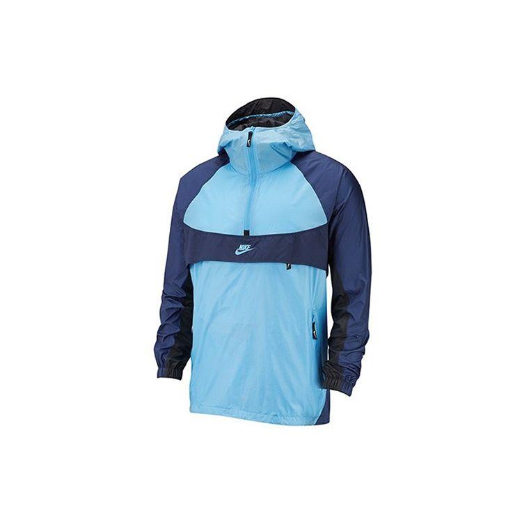 Мужская тканая куртка с капюшоном с полумолнией Nike Colorblock, синяя BV5386-412 — купить товар онлайн с бесплатной доставкой по всему миру!