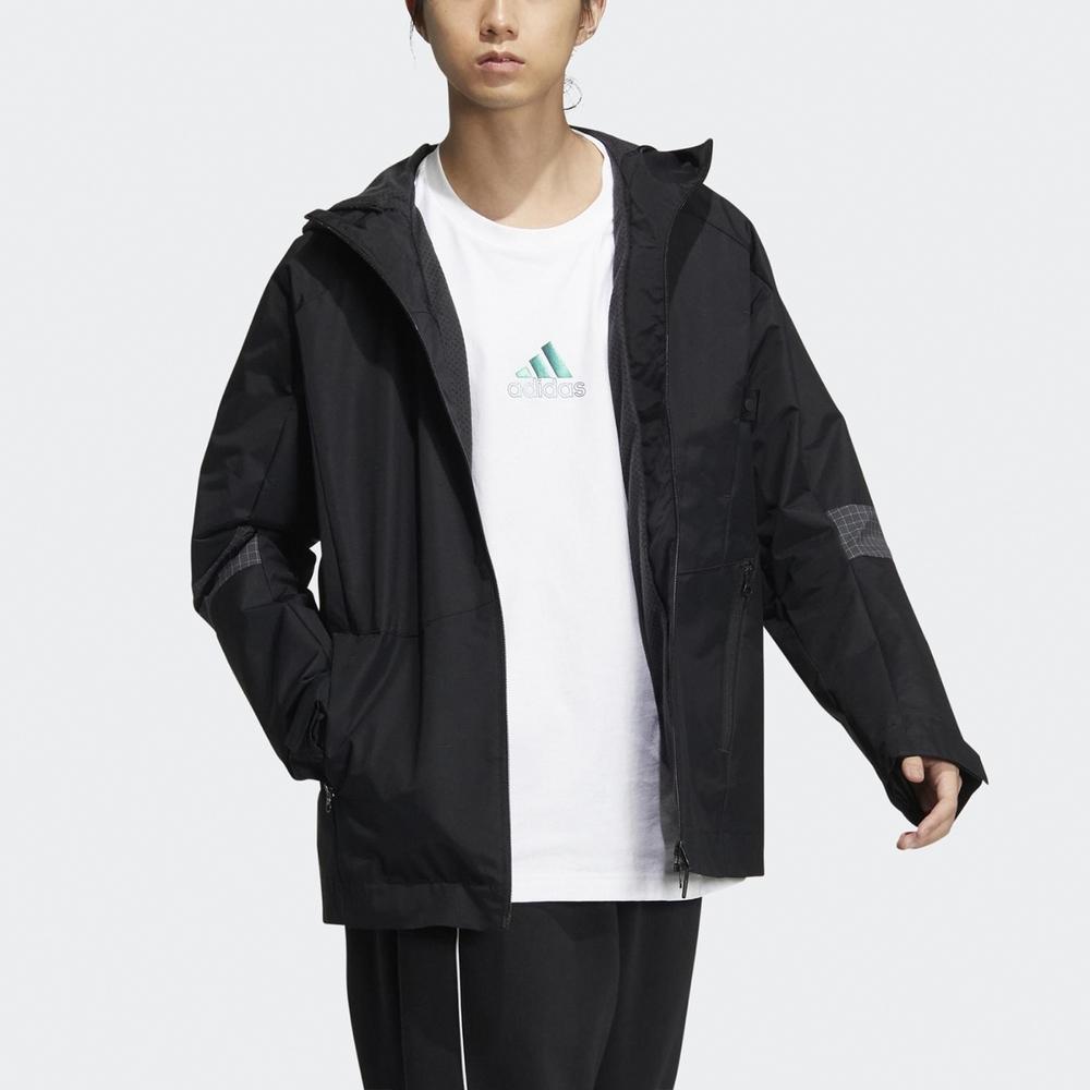 Adidas Однотонная мужская куртка с капюшоном и контрастным принтом логотипа, черная HR4436