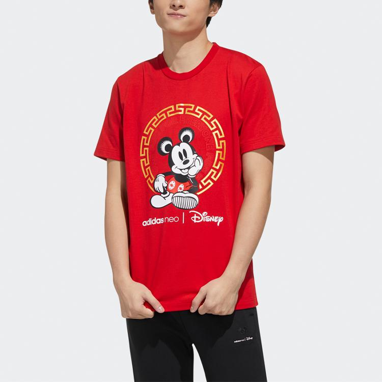 Adidas Спортивная футболка с короткими рукавами Neo Disney с Микки Маусом, мужские топы из коллекции CNY, красные GE7781