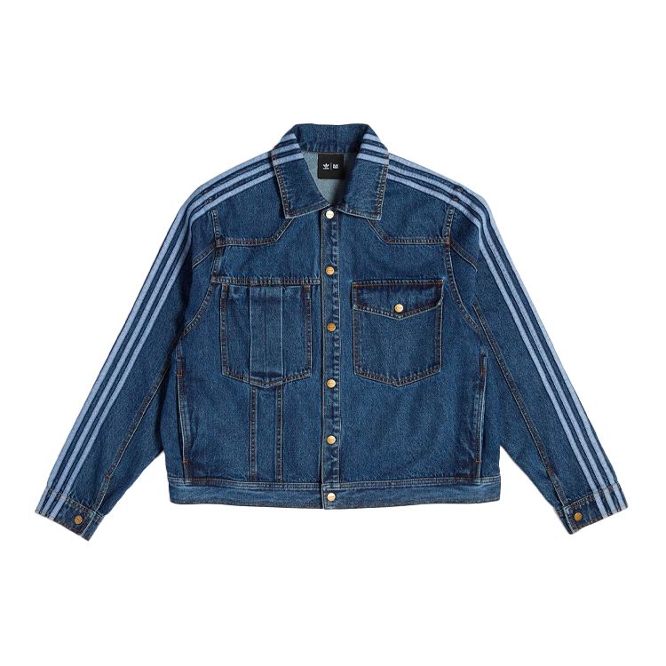 Adidas Originals Trefoil X Ivy Park однобортная повседневная джинсовая куртка в полоску, верхняя одежда унисекс, синяя HG6544 — купить товар онлайн с бесплатной доставкой по всему миру!