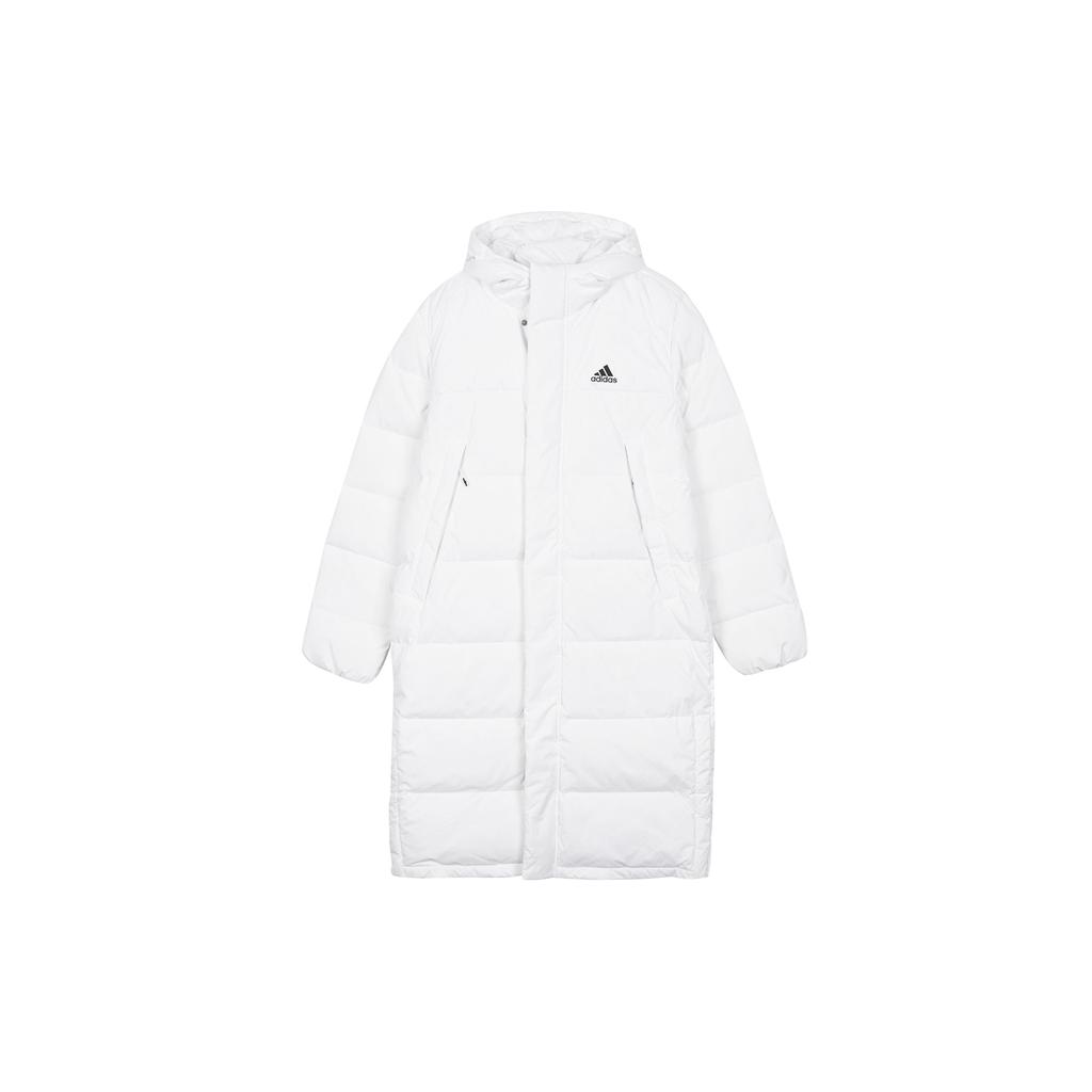 Adidas Пуховик средней длины с капюшоном и логотипом алфавита, верхняя одежда унисекс, белый HZ2600