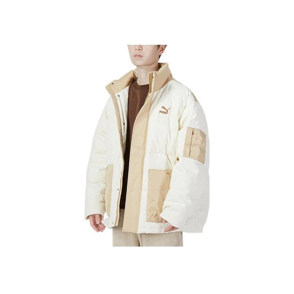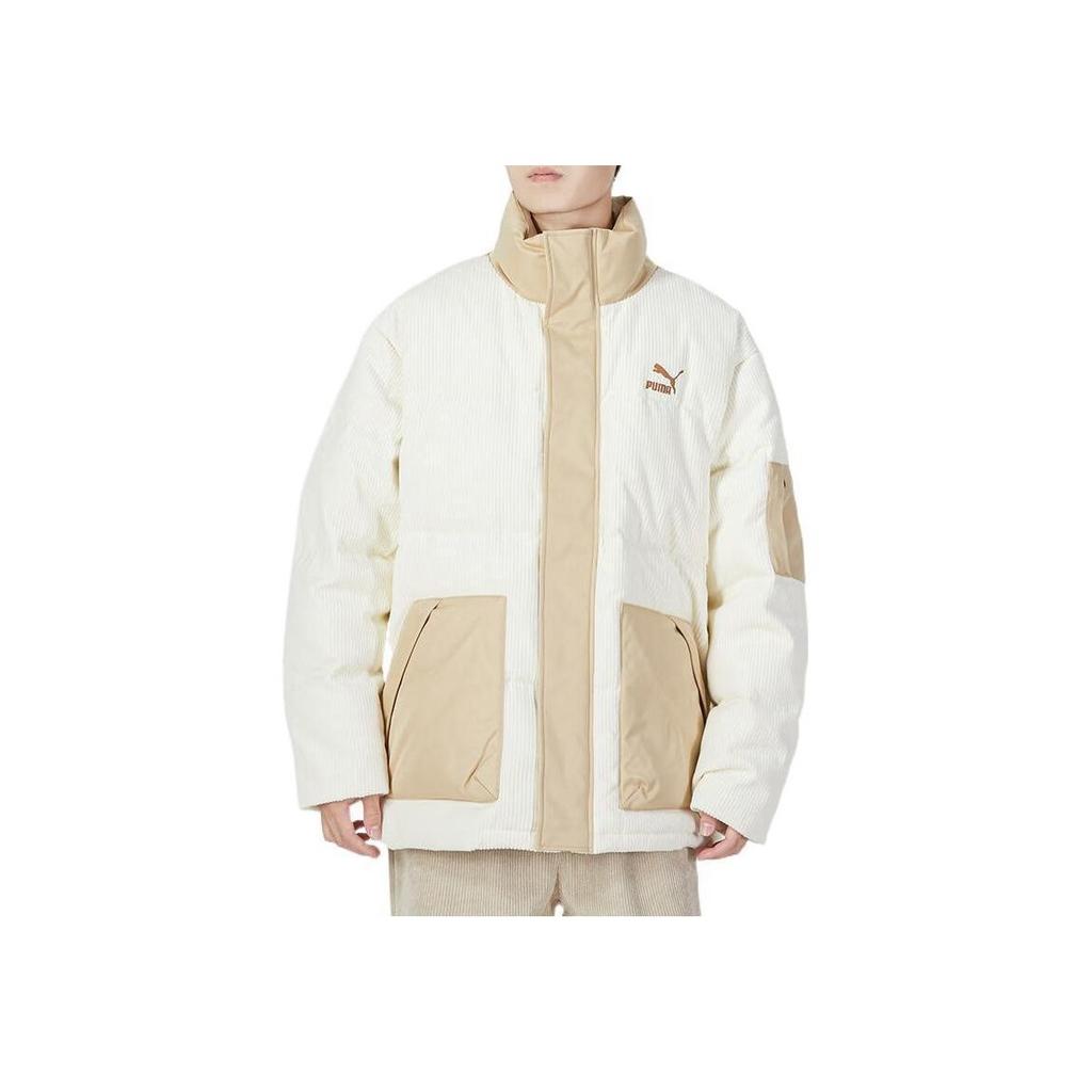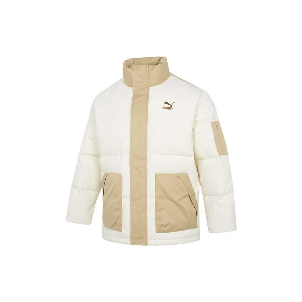 Puma Сращенный дизайн с логотипом и воротником-стойкой Пуховик унисекс Верхняя одежда Бежевый 539837-97