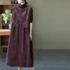 Женское вельветовое платье средней длины без рукавов с круглым вырезом и укороченными складками с разрезом по подолу — купить товар онлайн с бесплатной доставкой до всему миру!