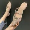 Женские босоножки на массивном каблуке с острыми заклепками, полутапочки Baotou, женские пикантные сандалии из мягкой кожи, тапочки с острым носком на низком каблуке