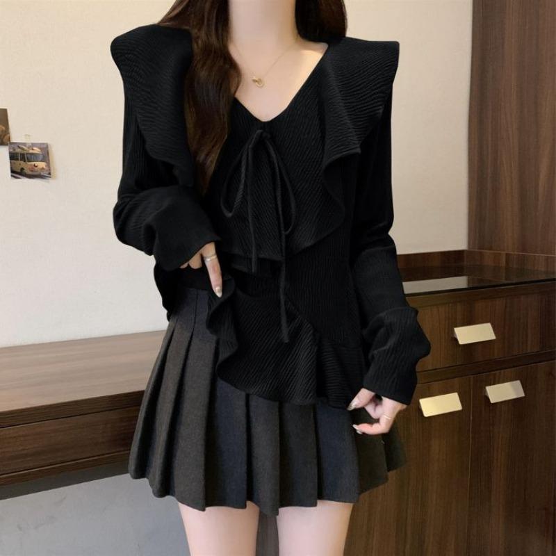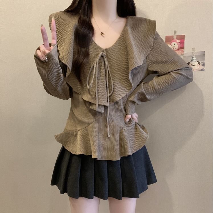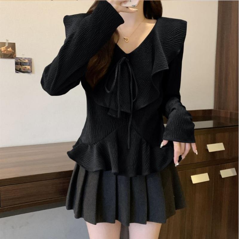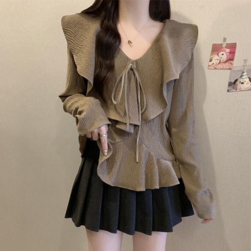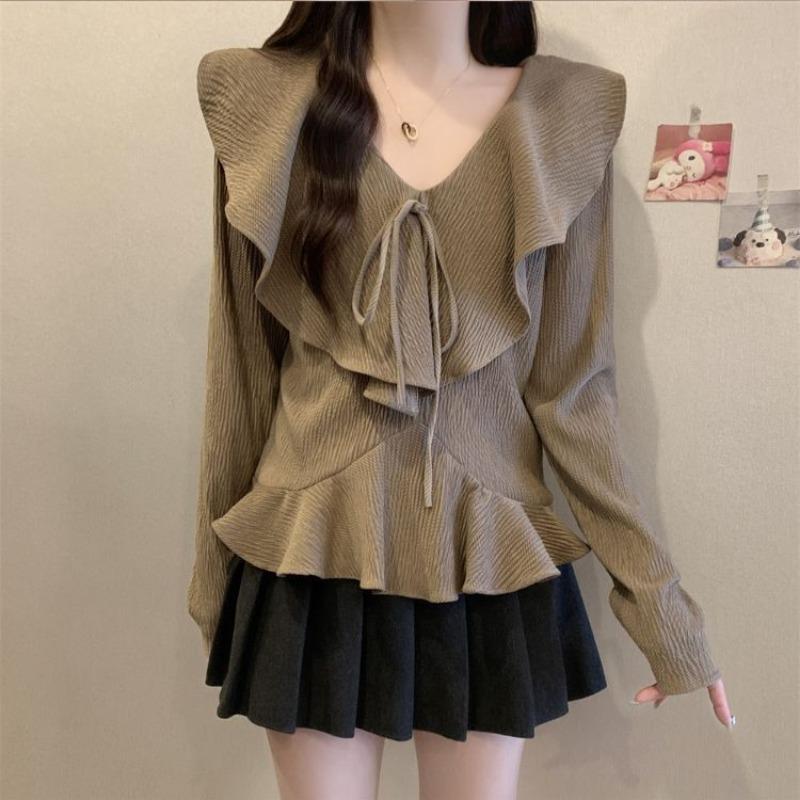 Женская рубашка для похудения с французскими рюшами и v-образным вырезом, красивая маленькая рубашка на весну и осень