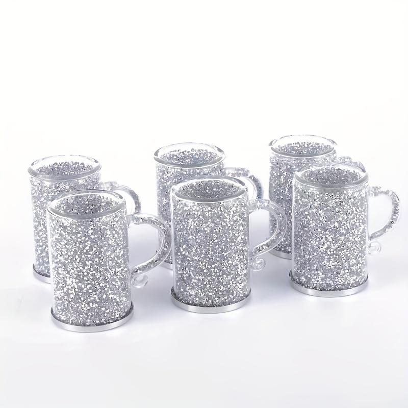 Набор из 6 ослепительных стеклянных кружек с бриллиантами — высокая боросиликатная термостойкость для кофе, чая и напитков — идеально подходит для кафе, ресторанов и дома