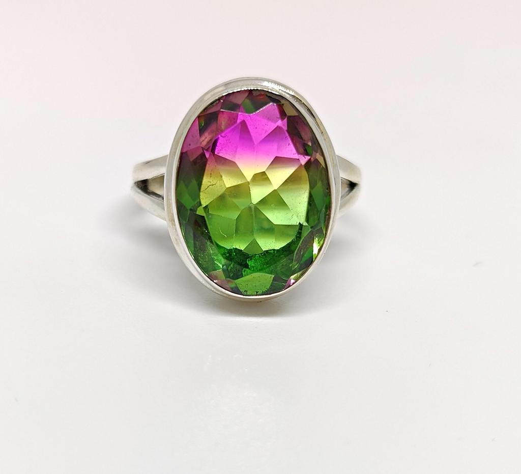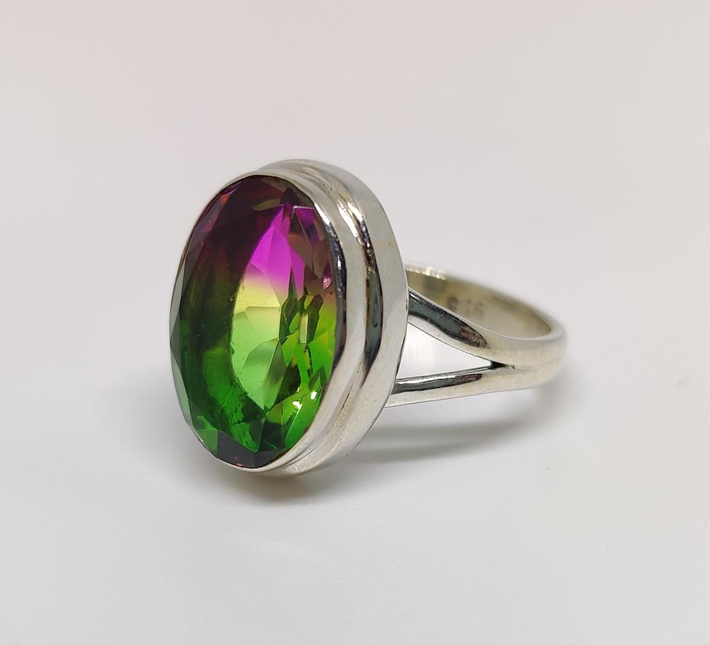 Кольцо с турмалином в виде арбуза, серебро 925 пробы, многоцветное кольцо с турмалином, кольцо в стиле бохо, кольцо с драгоценным камнем, ювелирные изделия ручной работы