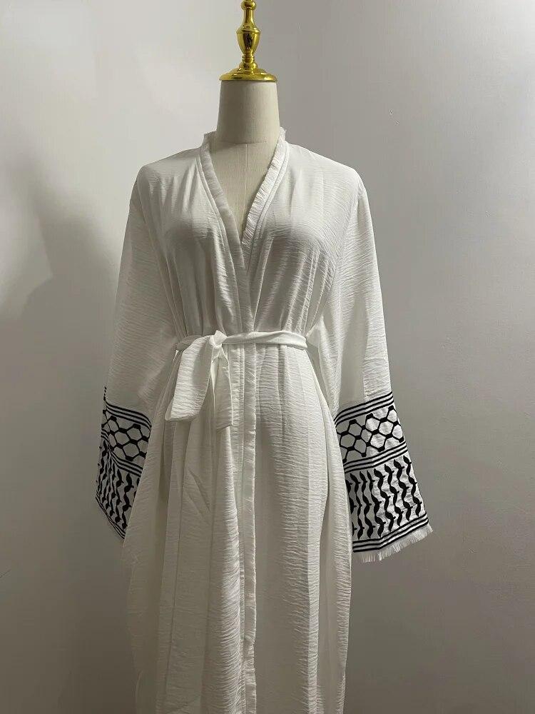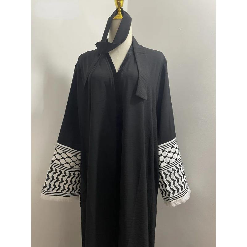 Мусульманское платье, скромная исламская одежда, новая мягкая креповая вышивка, Палестина, Кефия, Абая, Рамадан, с кисточками, Дубай, женская Абая