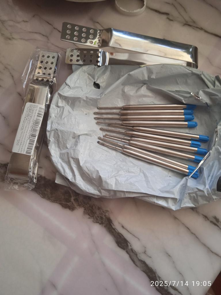 Огромное спасибо за заказ два в одном.Стержни заказываю уже несколько раз, очень довольна.Пишут жирно,не мажут.Щипцы для чайных пакетиков -это хорошая и удобная вещь.