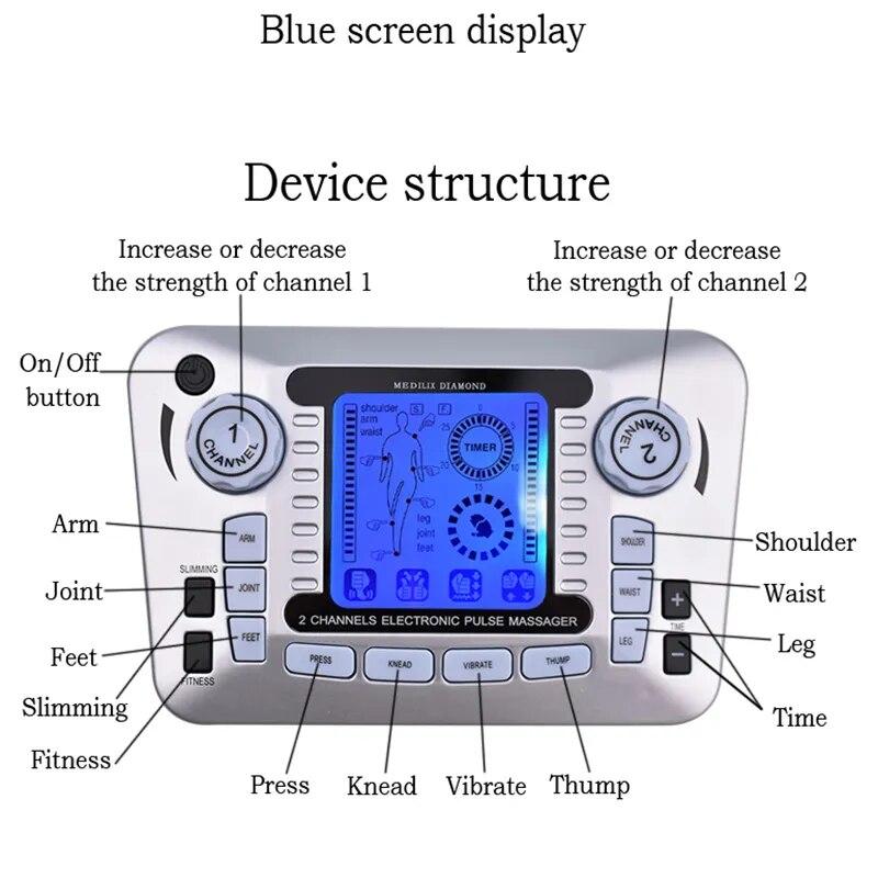 Tens Массажер Ems Стимулятор мышц Акупунктура Электрические подушечки Импульсная низкочастотная физиотерапия Машина для похудения Здравоохранение
