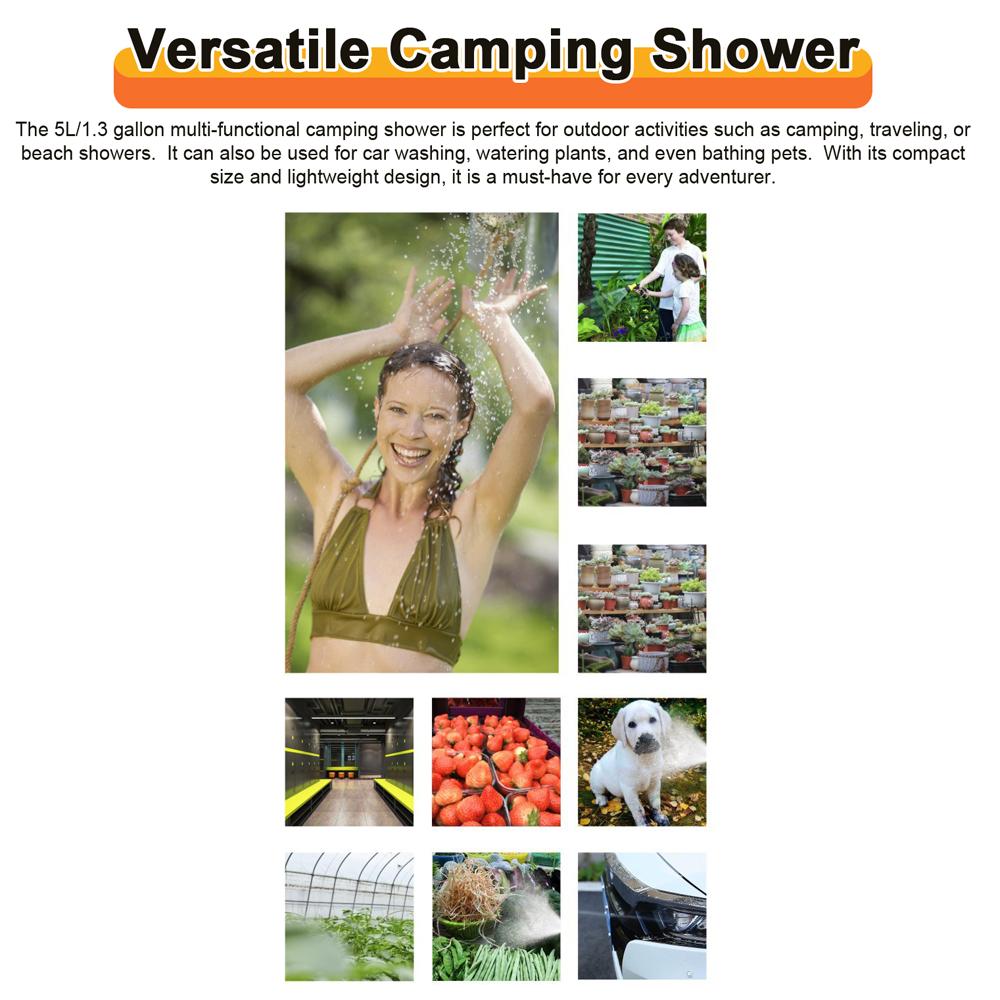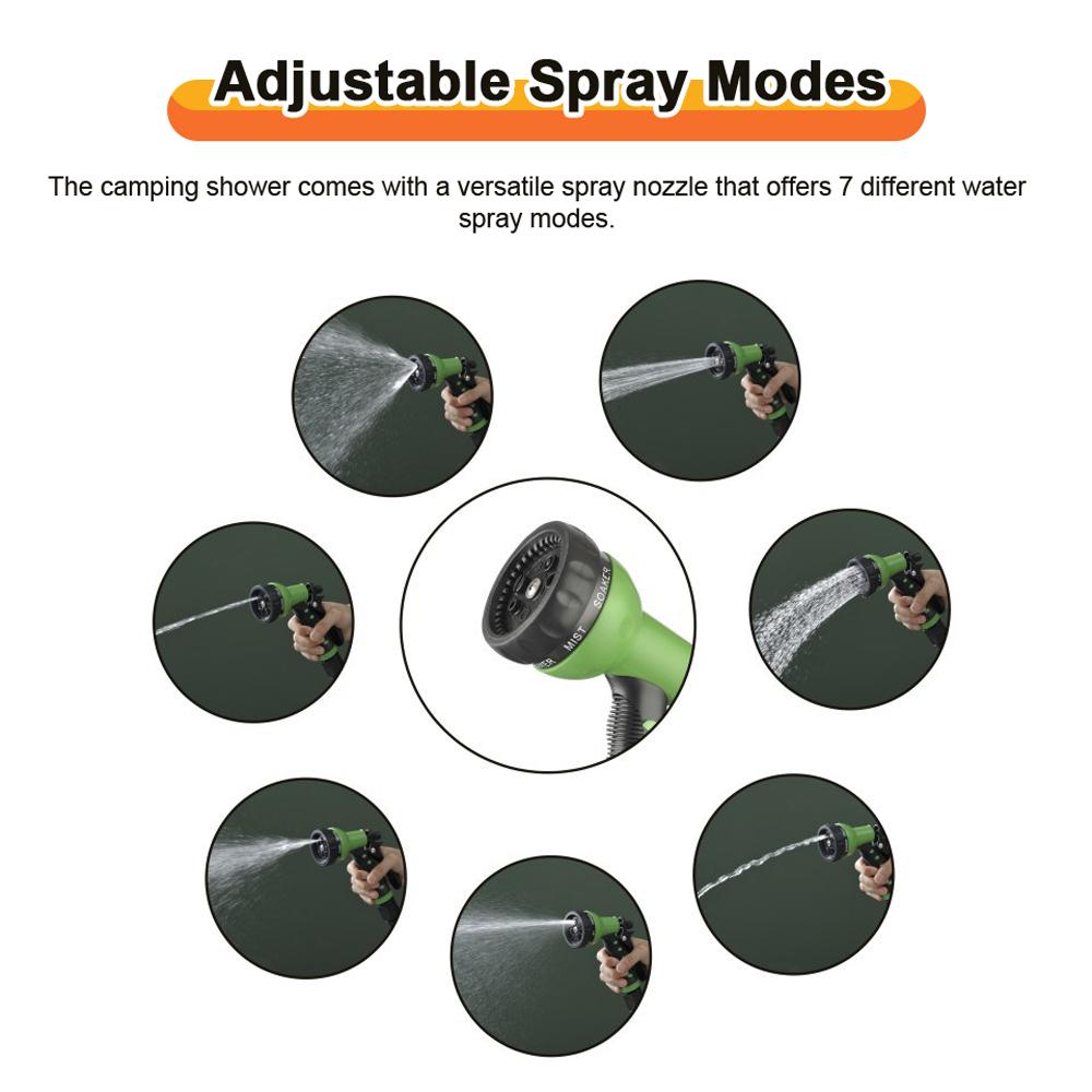 Многофункциональный походный душ, портативный распылитель воды под давлением, 5 л/1,3 галлона, с 7 режимами распыления