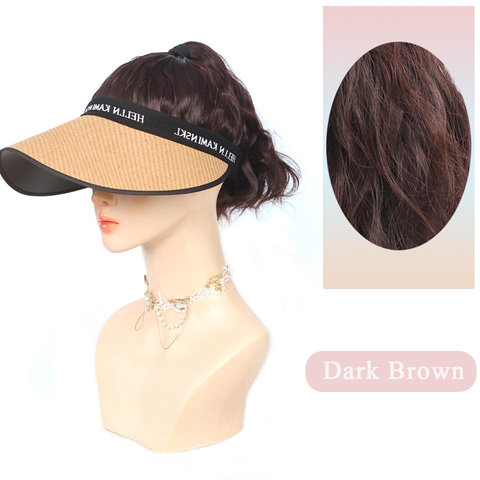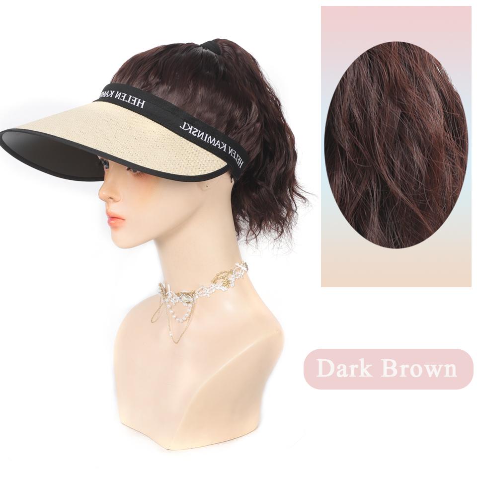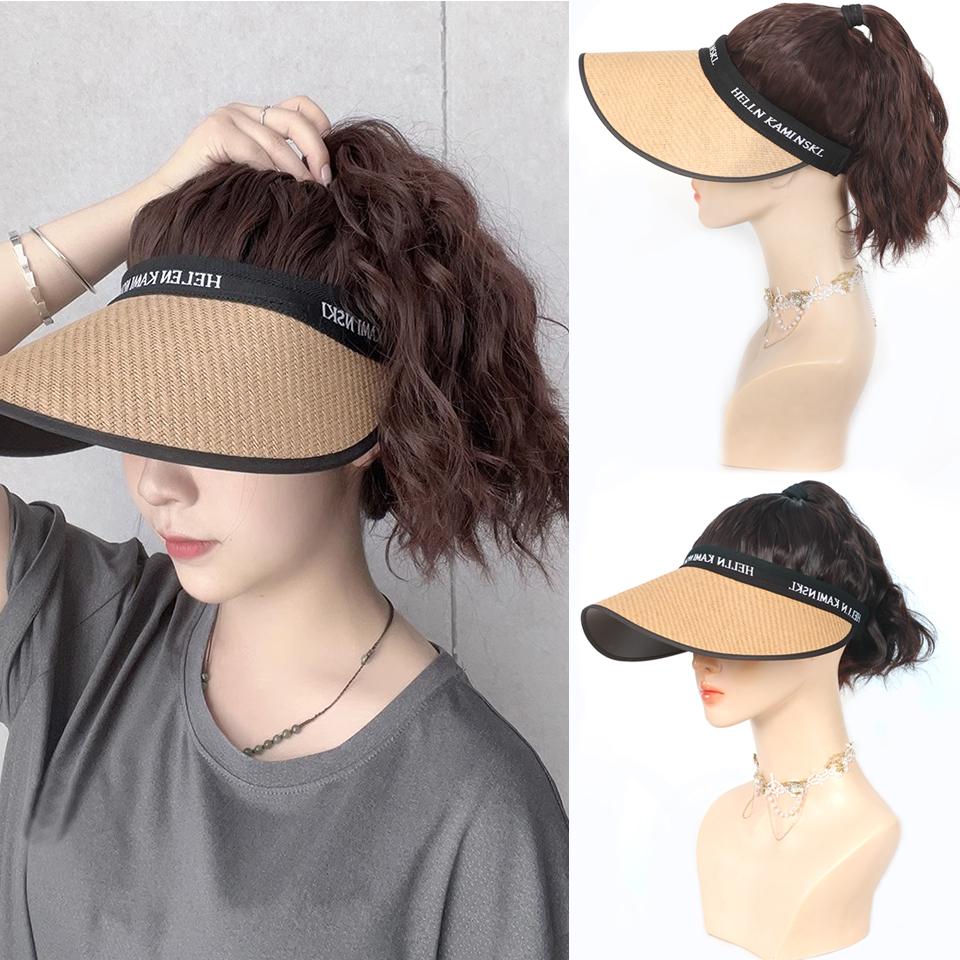 Пляжная кепка от солнца, весна-лето, солнцезащитная шляпа, парик, синтетический короткий волнистый парик с хвостиком, легко носить, шляпа, парики для женщин