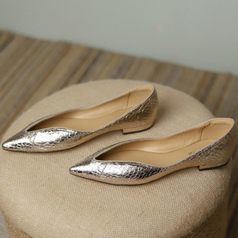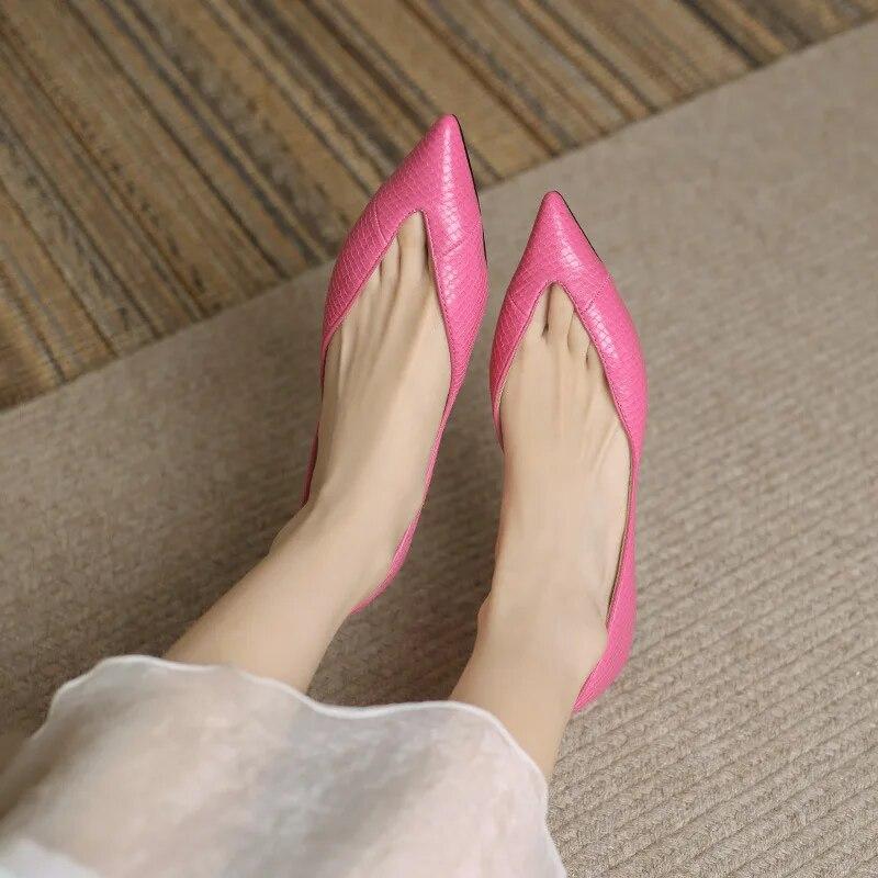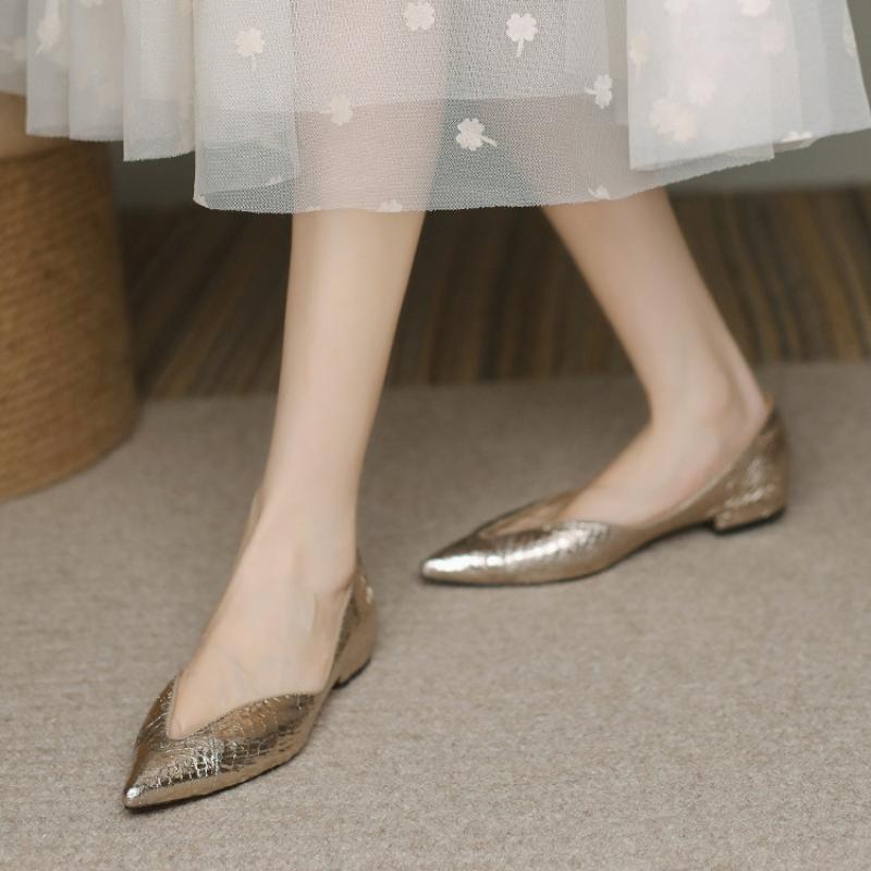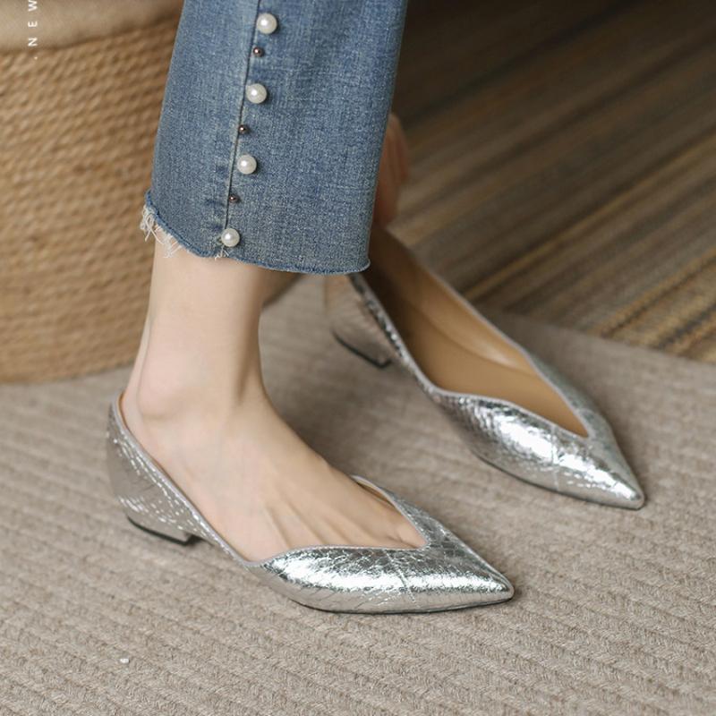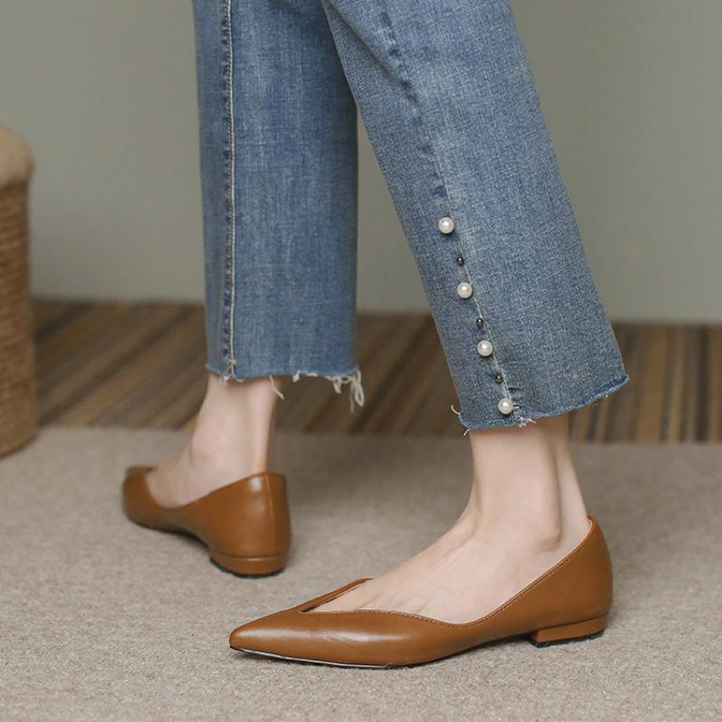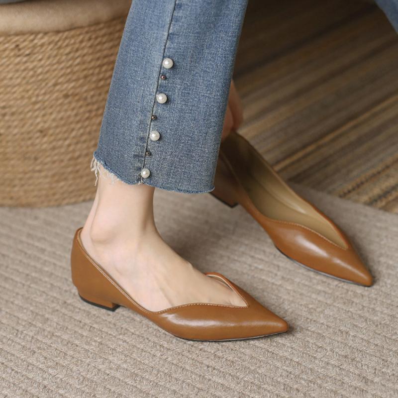 Роскошная темпераментная женская обувь, летняя новая французская кожаная обувь с острым носком, простая удобная одиночная обувь из овчины, элегантная обувь на низком каблуке