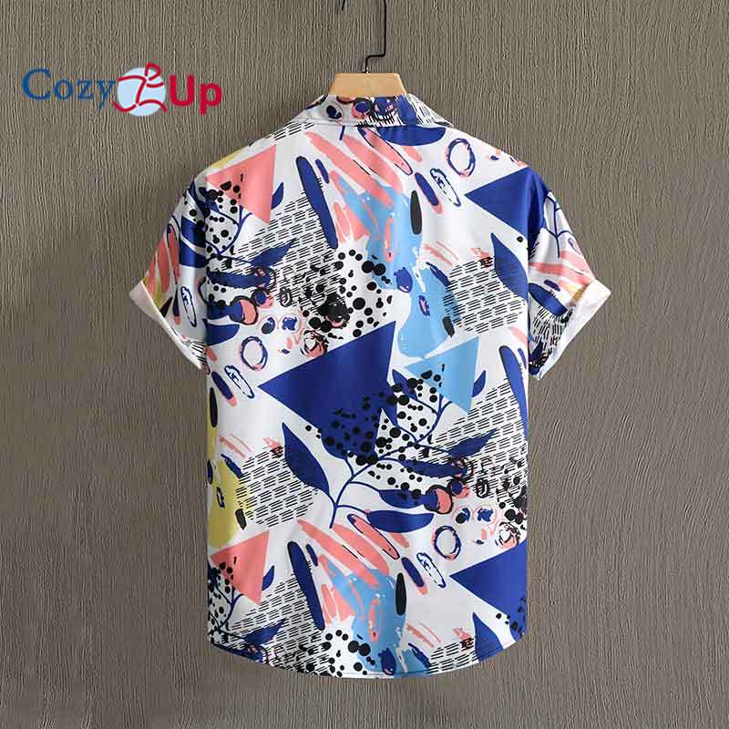 Гавайская рубашка с тропическими растениями, мужская повседневная рубашка с короткими рукавами и пуговицами с принтом по всей поверхности для летнего курорта