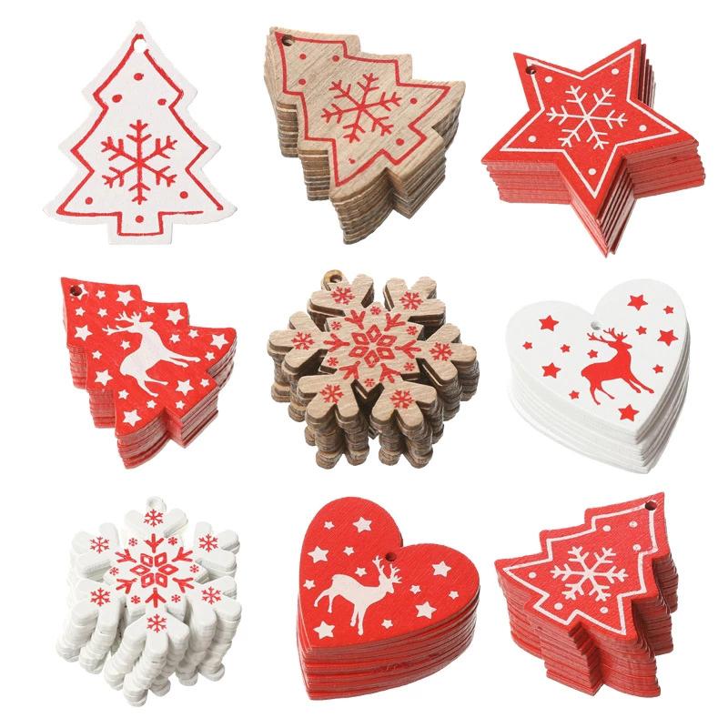 10 шт./компл. натуральные деревянные рождественские украшения, подвесные подвески, детские игрушки, снежный лось, рождественская елка