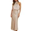 Облегающее женское платье с воротником-стойкой и лямкой на шее без рукавов, гладкое атласное вечернее платье миди со свободным подолом