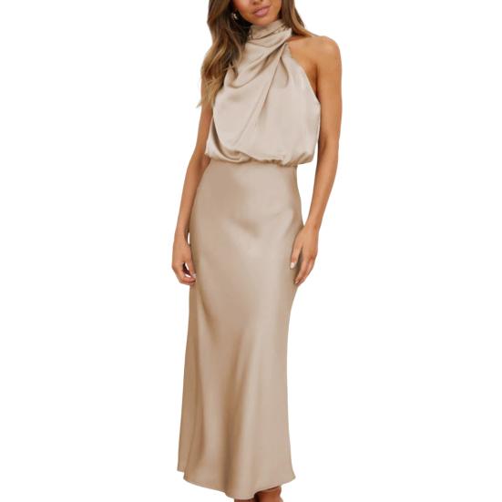 Облегающее женское платье с воротником-стойкой и лямкой на шее без рукавов, гладкое атласное вечернее платье миди со свободным подолом — купить товар онлайн с бесплатной доставкой по всему миру!